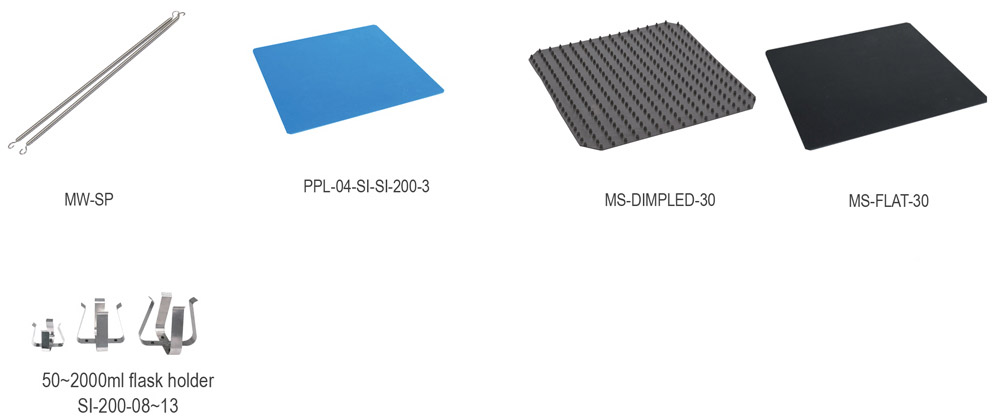 • 平台支援多種配件,包括燒瓶夾和試管架,可容納實驗室器具。